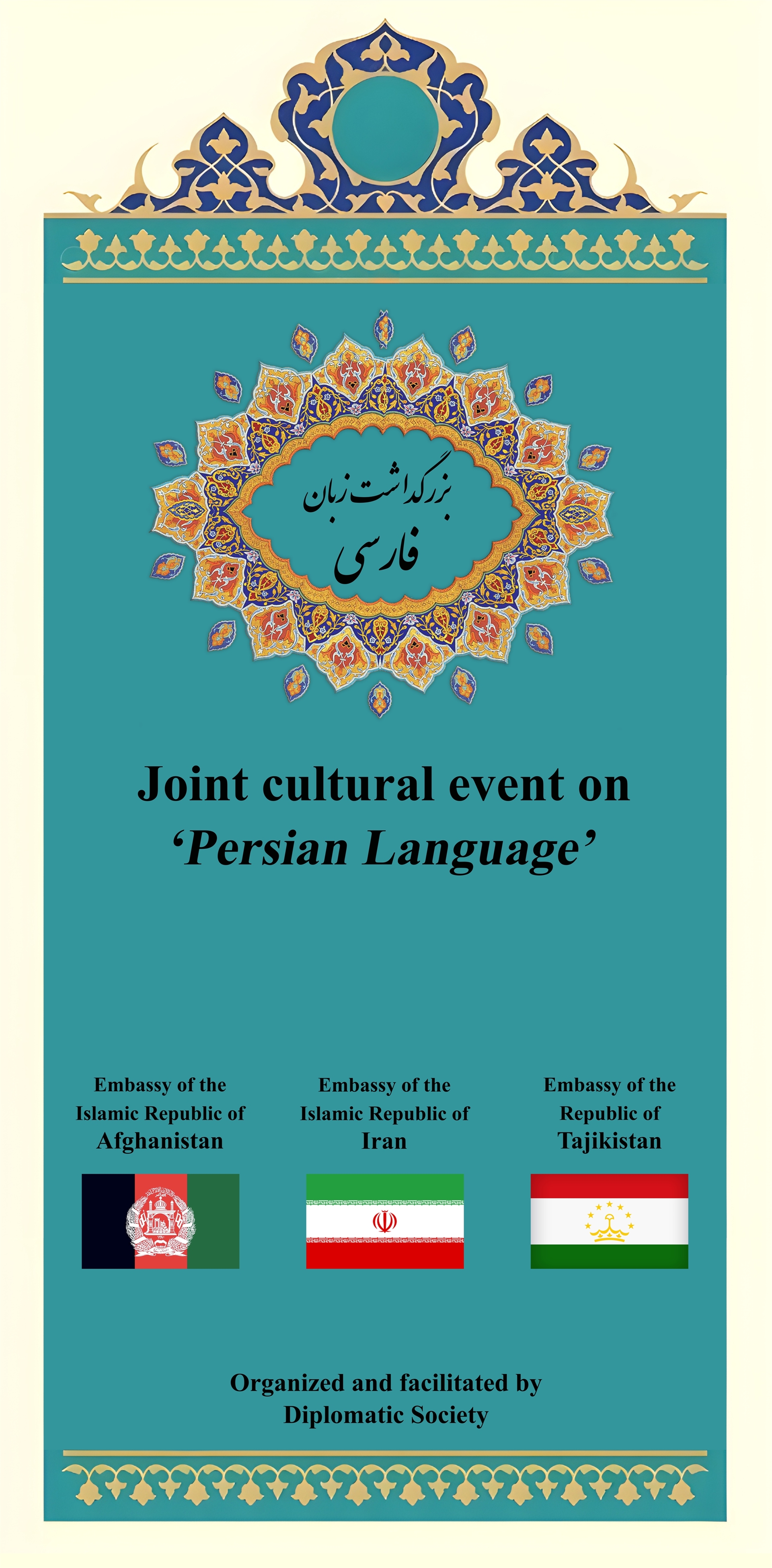 روز پنجشنبه، 20 شهریور (11 سپتامبر 2025)، برای چهارمین سال پیاپی مراسم بزرگداشت زبان فارسی با میزبانی انجمن دیپلماتیک سوسایتی و همکاری سفارت جمهوری اسلامی ایران با سفارتخانه‌های افغانستان و تاجیکستان در وین، برگزار شد. در بخشی از این مراسم هنرمندانی از سه کشور به اجرای موسیقی پرداختند. همچنین در حاشیه  مراسم، نمایشگاه آثار فرهنگی و صنایع دستی سه کشور فارسی زبان برگزار شد. در انتها با غذاهای سنتی و محلی از مهمانان پذیرایی شد.